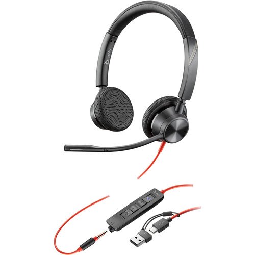 Poly Blackwire 3325 Stereo USB-C Headset with USB-C to USB-A Adapter